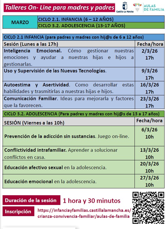 Os dejo por aquí, información referente al aula de familias del mes de Marzo, por si fuera de vuestro interés.